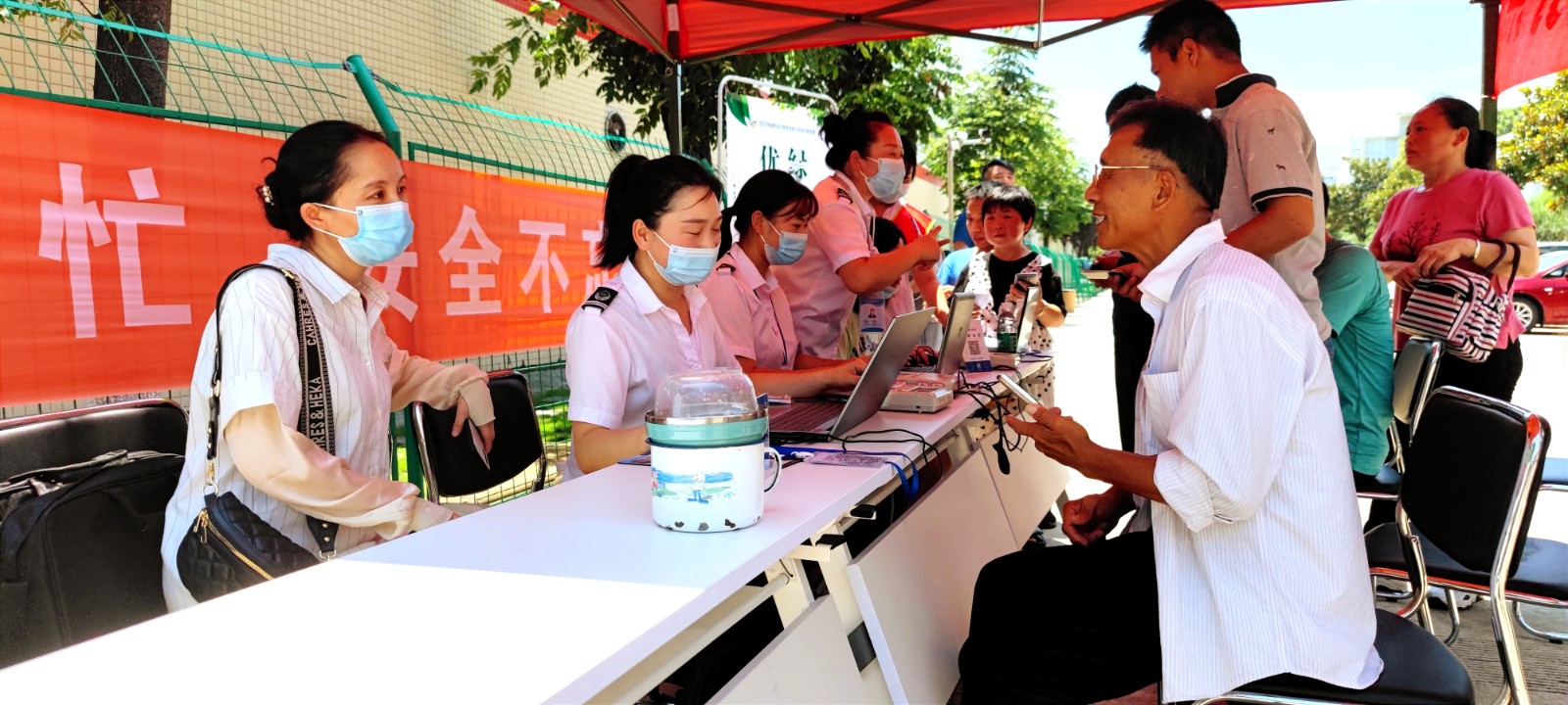 當(dāng)天中午12時(shí),正是一天最炎熱的時(shí)候,也是廠區(qū)職工午休時(shí)間。選在這個(gè)時(shí)間段開展流動(dòng)服務(wù),是可以最大程度方便殘疾工友,不會(huì)耽擱到他們的生產(chǎn)作業(yè),更不會(huì)影響他們正常休息,服務(wù)點(diǎn)就設(shè)在他們下班的必經(jīng)路。
