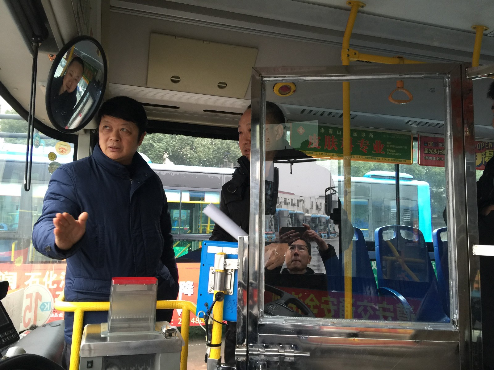 市交投公司黨委委員、荊門公交集團(tuán)董事長(zhǎng)趙吉美匯報(bào)有關(guān)情況,督查組一行查看了公交集團(tuán)公司兩臺(tái)公交駕駛室防護(hù)裝置樣品車輛情況,和企業(yè)負(fù)責(zé)人現(xiàn)場(chǎng)研究生命防護(hù)裝置設(shè)置樣式,本著安全、美觀、經(jīng)濟(jì)的原則確定了下一步安裝的標(biāo)準(zhǔn)。